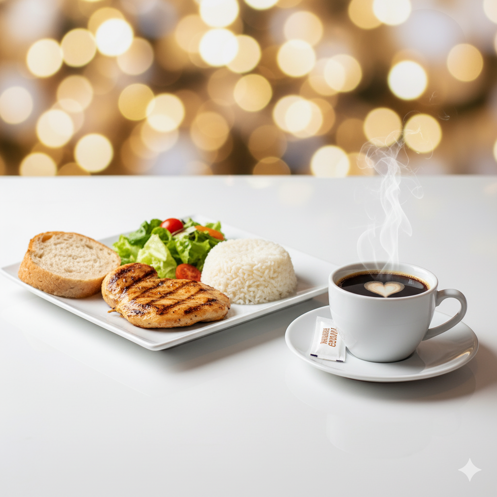 Este menú demuestra que no siempre es necesario elegir la opción más grande para disfrutar de una excelente comida. La combinación de un plato principal, bebida y el toque final dulce o de café lo convierten en una opción completa y muy versátil. Es el bocado perfecto para una comida rápida, llena de energía y sabor.