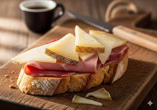 Esta tostada es un tributo a la calidad de los ingredientes españoles. El sabor delicado del jamón de York se complementa a la perfección con la riqueza y el carácter del queso manchego, ofreciendo una experiencia gustativa completa. La combinación de la suavidad del jamón con la textura sólida y el sabor único del queso es lo que convierte a este plato en un favorito. Es un bocado que demuestra que, a veces, el mejor maridaje es el de texturas y sabores contrastantes.